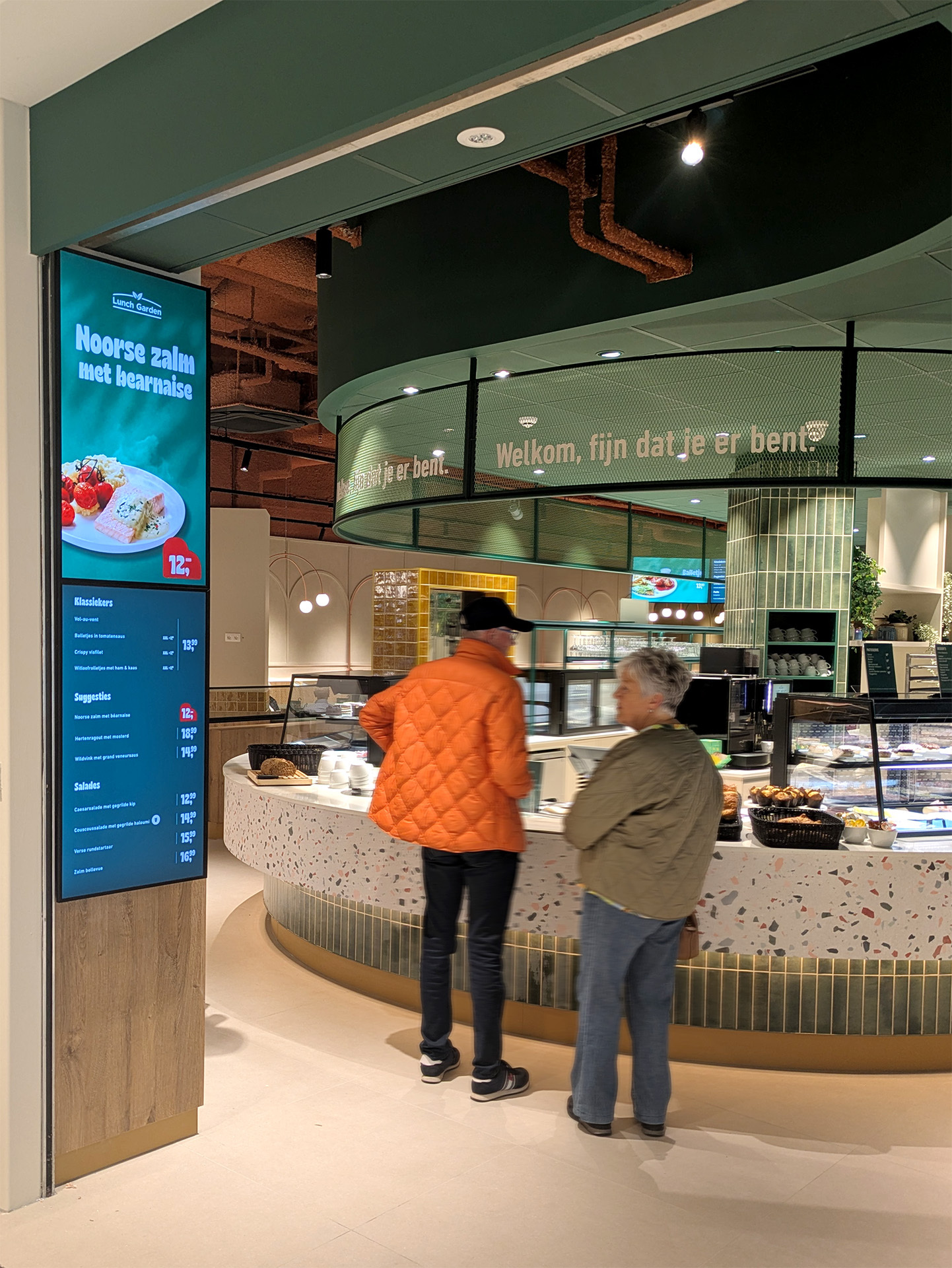 We maken het verschil bij Lunch Garden door het bieden van een totaaloplossing: van de hardware en software tot de complete content aanmaak, motion design en de planning van scenario's voor alle schermen. Dit zorgt voor een consistente, aantrekkelijke en actuele presentatie van de menu's, suggesties en acties. Klanten worden op een moderne en verleidelijke manier geïnformeerd over het aanbod, wat bijdraagt aan een vlottere doorstroming en een verbeterde algemene klantervaring.