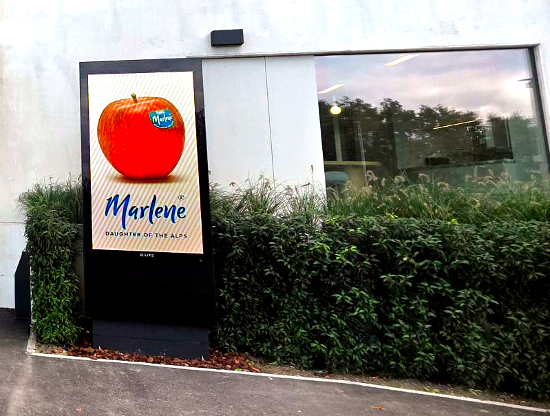 Aartsen staat bekend als een internationaal opererend familiebedrijf dat groenten en fruit importeert uit meer dan 50 landen. Het outdoorscherm, prominent geplaatst aan de gevel of op het terrein, fungeert als een digitale ambassadeur voor dit wereldwijde karakter.